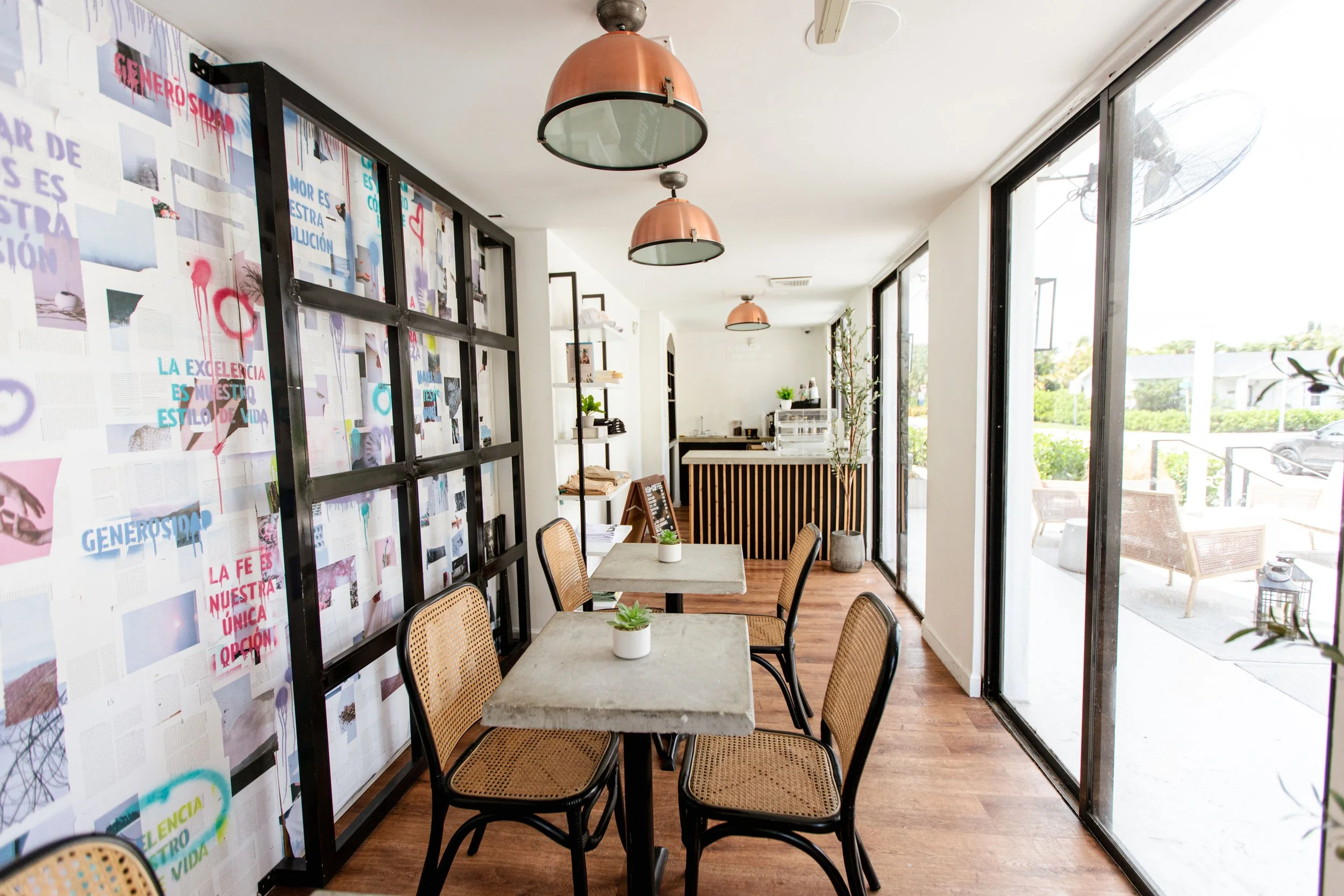 Ideation for this project began in 2020 — in the middle of the pandemic. It all began when a change occurred at a local church in Surfside, Miami. The owners decided to begin remodeling the space to create something inviting to all their visitors, and what better idea than to create a Coffee Shop for everyone to enjoy? After every service, or before, anyone can enjoy of a nice beverage/refreshment and enjoy the rest of their day. The vision was to add a space for the congregants to have a place to hang out. The new coffee shop used to be a storage closet with no other purpose than just a space to house miscellaneous things. This space had enclosed windows, and we decided to remove the cinder blocks that were blocking the windows, to help bring in more light and open the space up to create this modern look and feel.