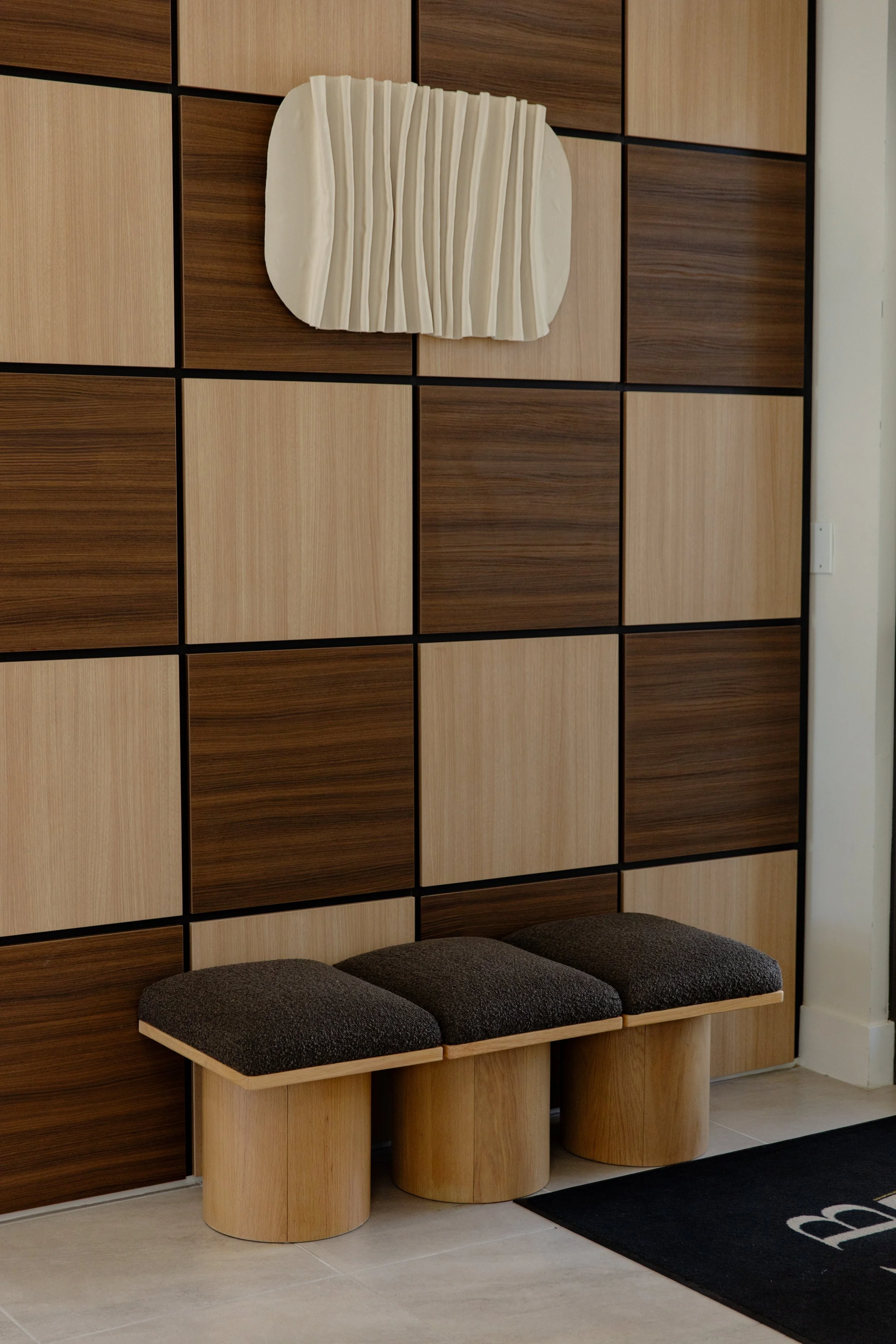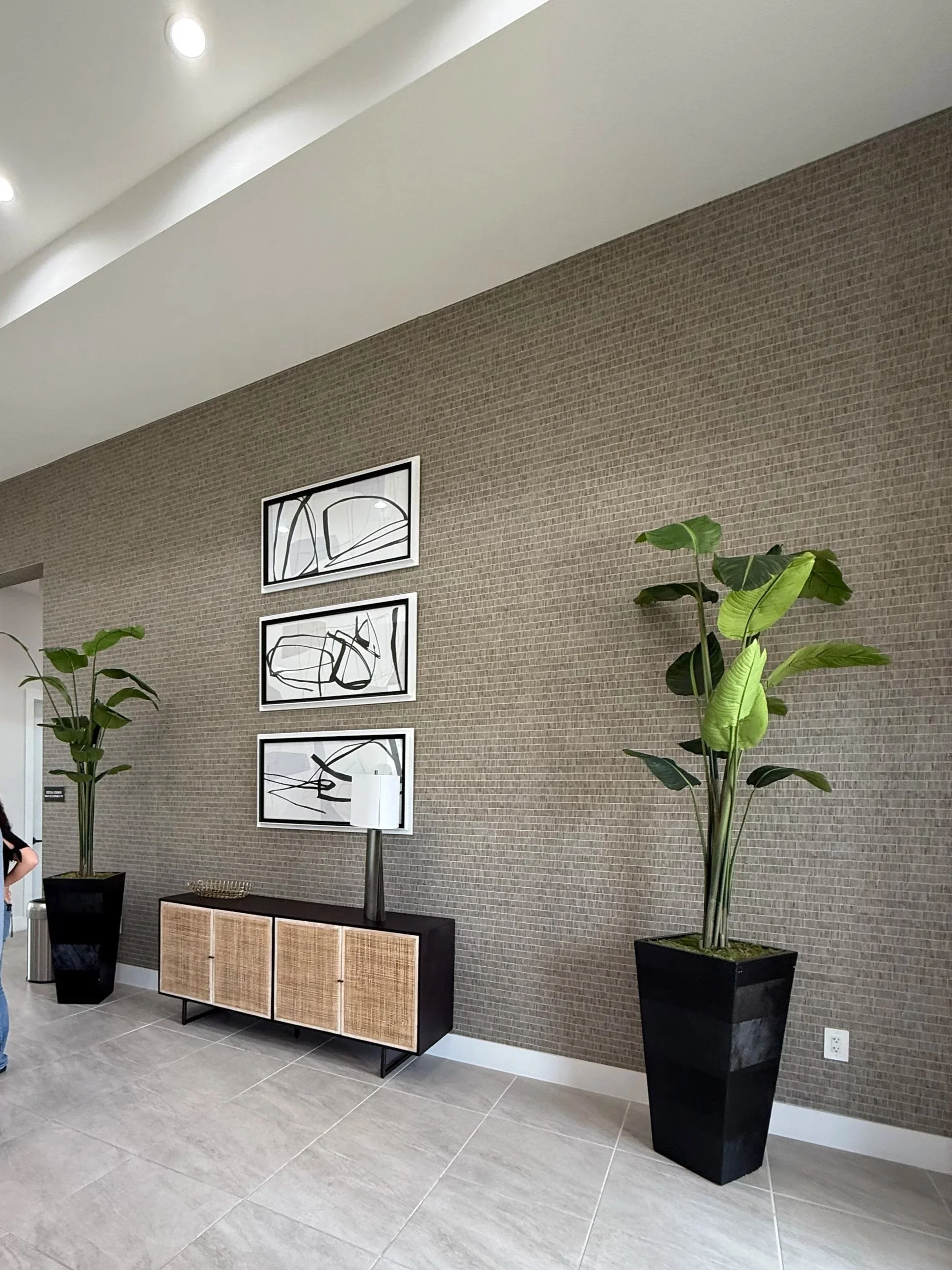 First impressions matter, especially in a shared community space. The entryway was designed to immediately communicate warmth and sophistication, setting the tone for residents and guests alike.