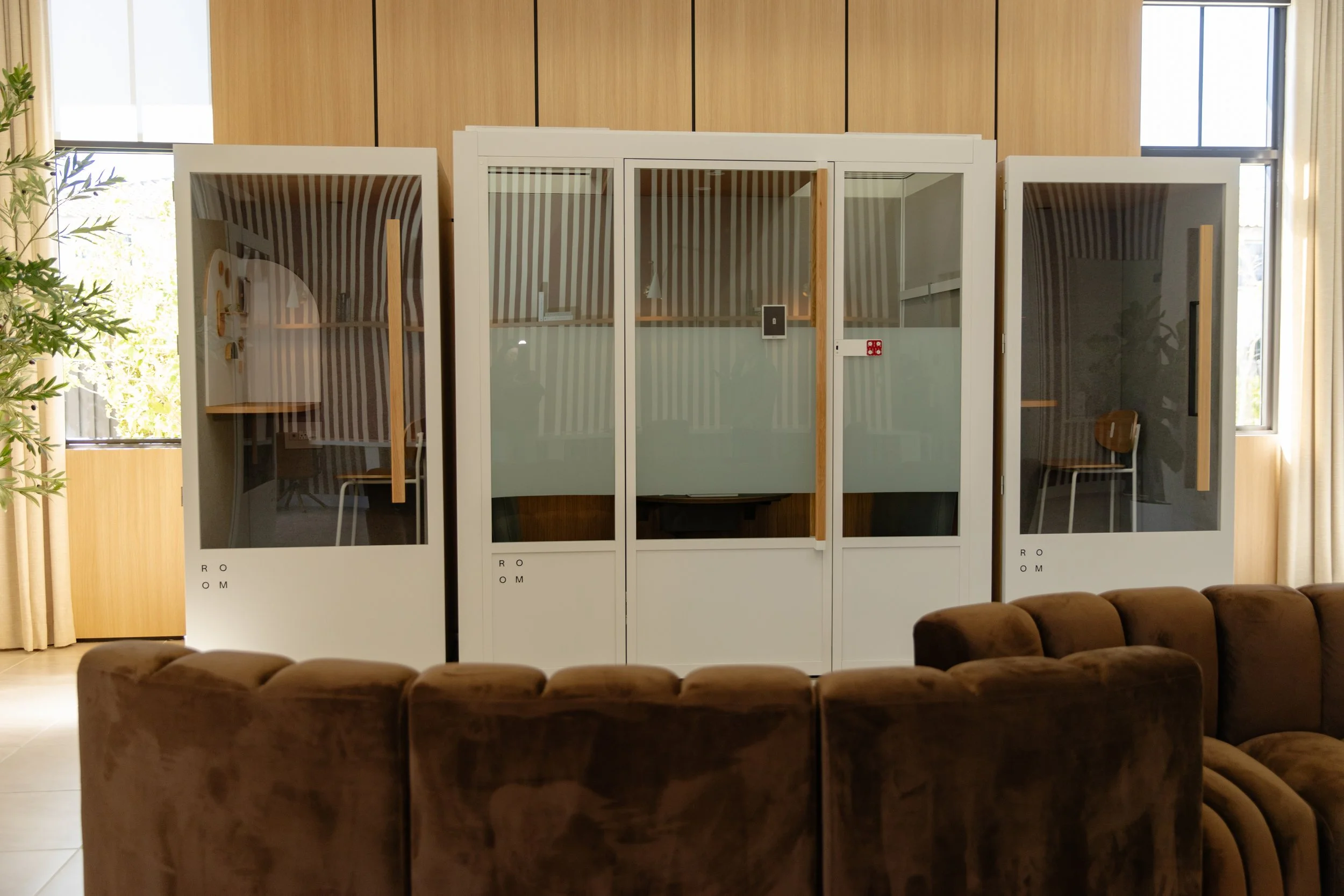 Private phone booths were also incorporated throughout the clubhouse co-working space, giving both staff and residents access to quiet areas for calls, virtual meetings, or moments of concentration, an essential feature in a multi-use environment like this.